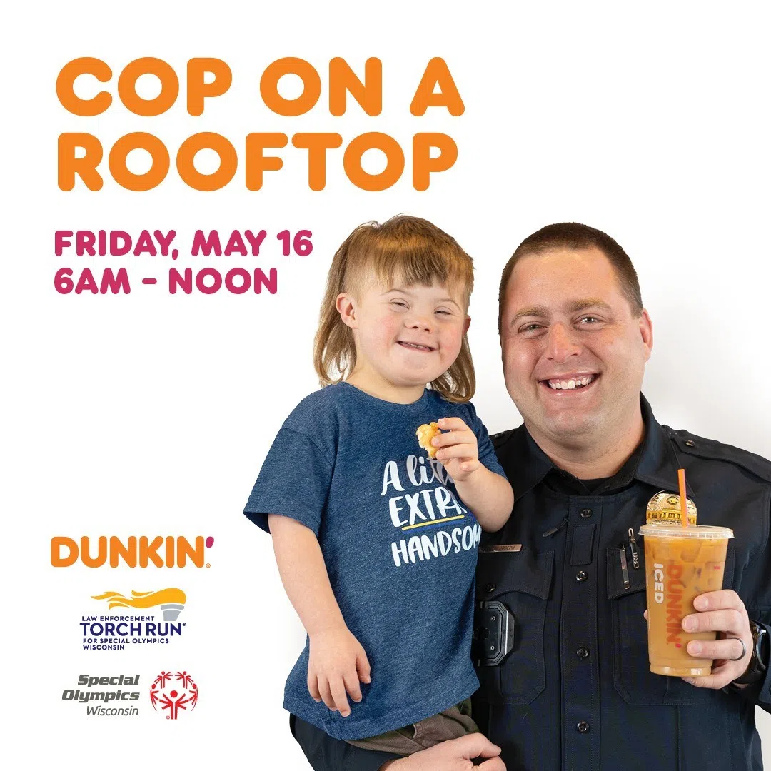 Join us for the 10th Annual Law Enforcement Torch Run (LETR) Dunkin’ Cop on a Rooftop fundraiser at any participating Wisconsin Dunkin’ location!